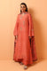A breathtaking design, this outfit showcases exquisite two-tone zari embroidery on the shirt front and sleeves, paired with embroidered Culottes pockets and a graceful Organza dupatta. Handcrafted Potli Bag with intricate embroidery to complete your ensemble.