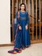 This Samandar article features a luxurious hand block print on the shirt and sleeves, paired with straight pants and a silk dupatta.
